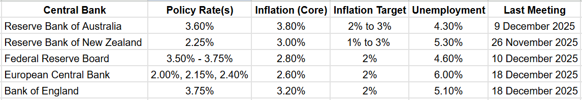 RBA & ECB hold while RBNZ, FED & BOE drop their key policy rates in the final decision of 2025
